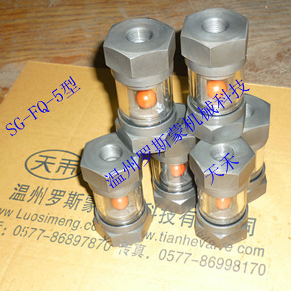 SG-FQ-5可视360°玻璃管式浮球水流指示器又称跳球视镜是观察管道内介质流动情况的必要附件。视镜广泛用于石油、化工、化纤、医药、食品等工业生产装置中,能随时观察液体、气体、蒸汽等介质的流动反应情况,是保障正常生产不可缺少的附件。流量指示器包括螺纹式流量指示器、焊接式流量指示器、 法兰式流量指示器。